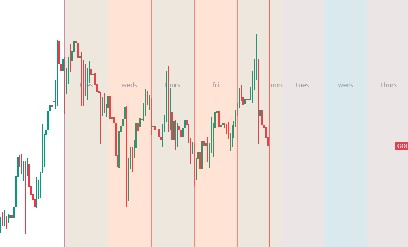 チャート上に曜日を示す「Week & Day Boxes Projected forward; with day-of-week labels」