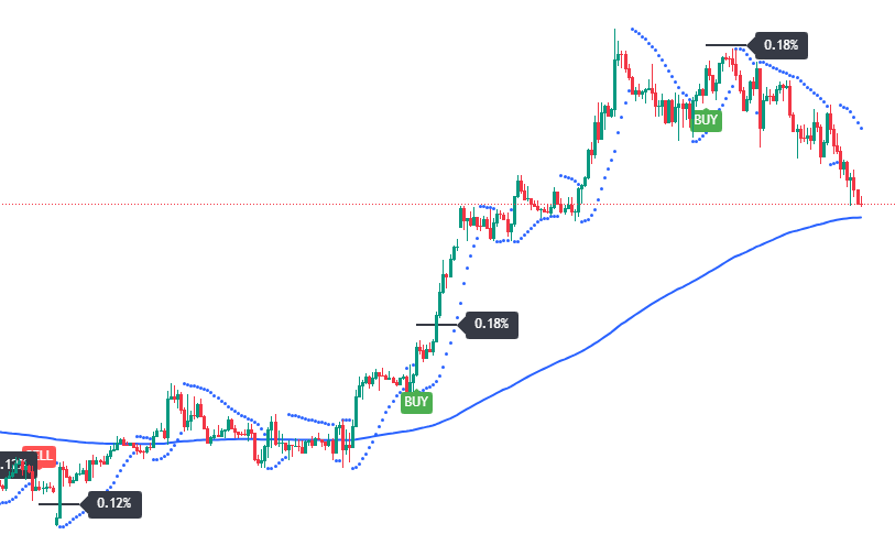 トレンドの勢いをバンド幅で示す「Impulse Trend Levels [BOSWaves]」