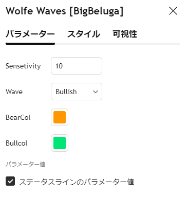 設定では売りのみ、買いのみ、両方のどれかを選択してウォルフ波動が表示できます。