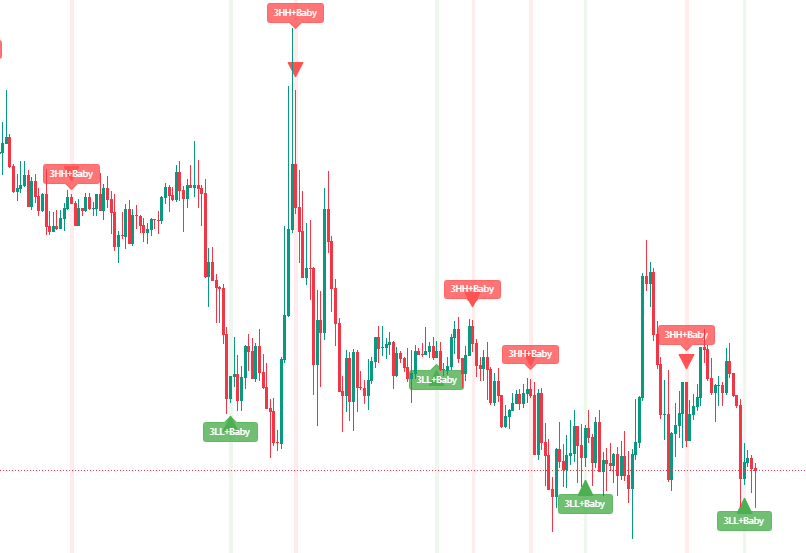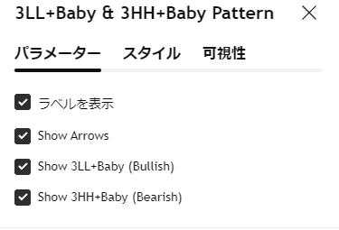 3LL+Baby、3HH+Babyという反転パターンを認識するインジです。