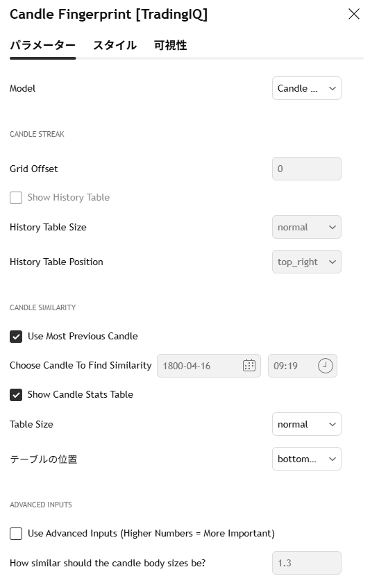 現在のローソク足と過去の似たローソク足を比較して、その後の値動きの傾向を統計的に見るTradingView系インジケーターです。