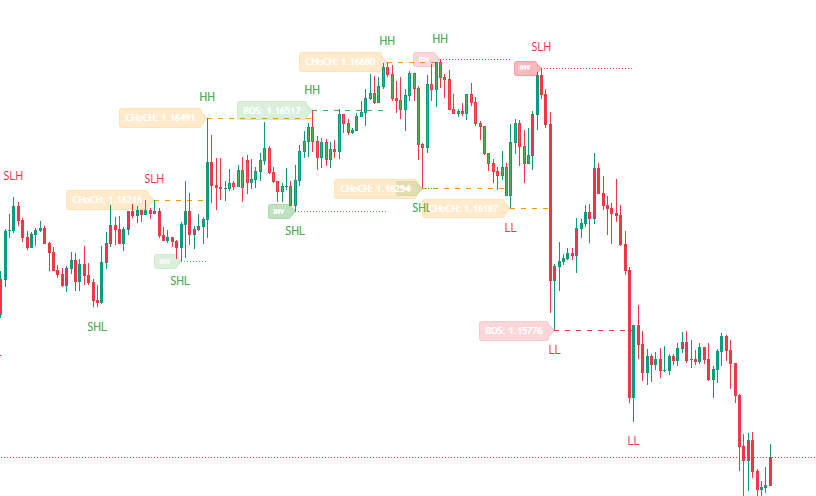 分かりやすくマーケットストラクチャーを表示する「Dynamic Market Structure (MTF) – Dow Theory」