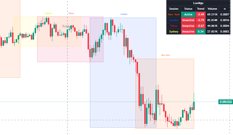 各セッションについて色々と表示できる「Sessions [LuxAlgo]」