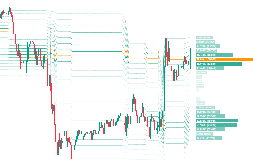 サポレジゾーンにボリュームプロファイルを表示する「Volume Range Profile with Fair Value (Zeiierman)」