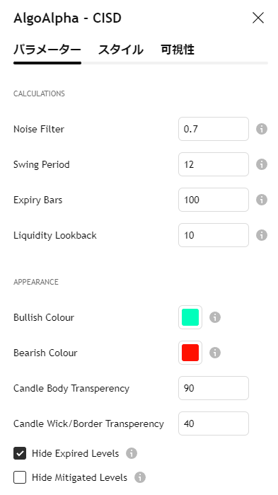 この失敗した方向”とその後の反対方向の勢いを定量的に比べ、一定の比率(トレランス=Tolerance)を上回ったときにCISDと認定されます。