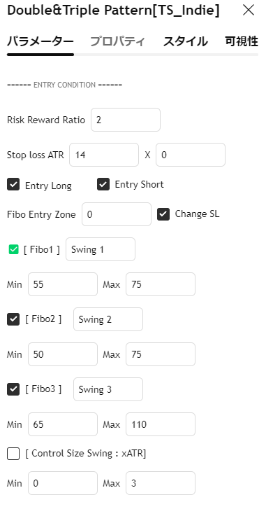 その後、Swing A と Swing B を基準に自動で フィボナッチボックス を描画し、スイング検出ゾーンを定義します。3つのスイング全てがフィボナッチボックス内に収まっているとパターンとして検出します。