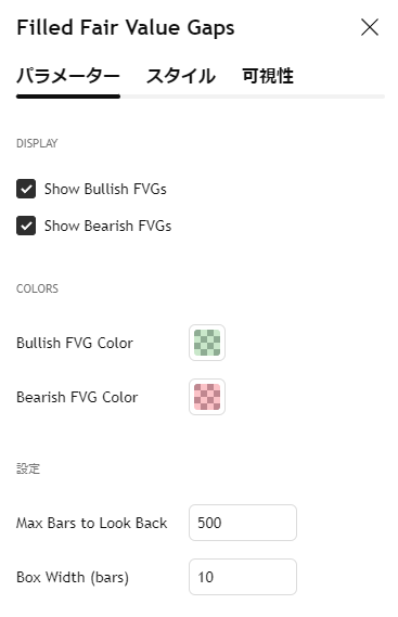 設定で買いのFVGのみ、売りのFVGのみの表示も可能です。