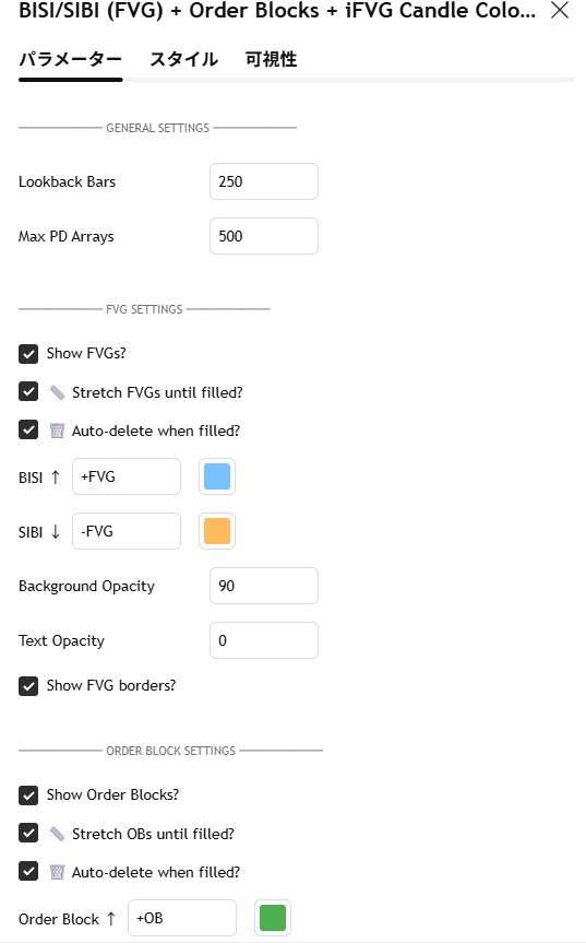 FVGとOBはunmitigated(未回収、その後価格が到達していない)の場合はゾーンが横に延長されます。