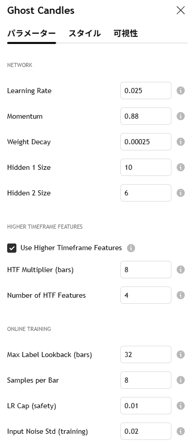 一方、このインジは「これまでの値動き」「ボラティリティ」「価格の勢い」「疑似的なオーダーフロー情報」などをもとに、短期的な先の展開をチャート上に半透明の足を描画します。