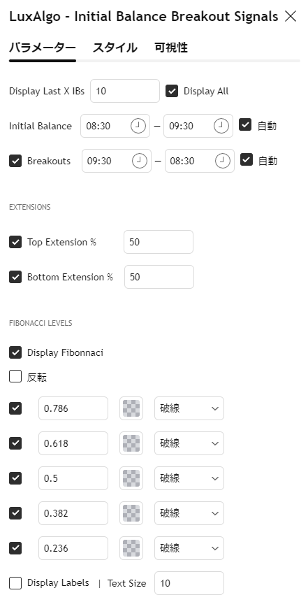 指定した時間帯の値幅を分かりやすく表示「Initial Balance Breakout Signals [LuxAlgo]」