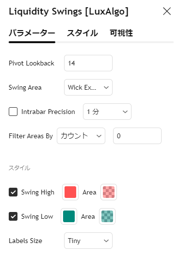 リクイディティのあるスイングが分かる「Liquidity Swings [LuxAlgo]」