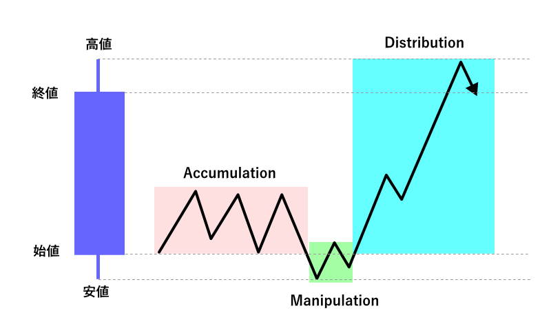 最初の33%を「Accumulation」として、レンジの高値・安値を記録します。