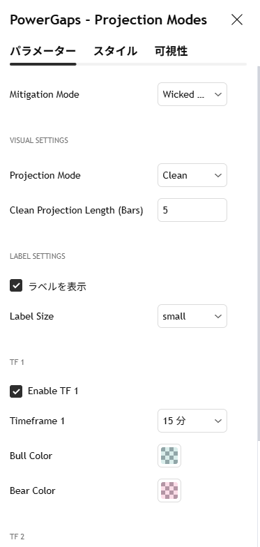 各ゾーンにはラベルも付くので、どの時間足のFVGかが一目で分かりますし、時間足ごとにゾーンの色も変えられます。