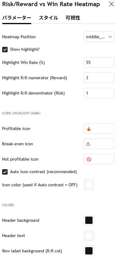 勝率とリスクリワードの関係性などを表で示す「Risk/Reward vs Win Rate Heatmap」