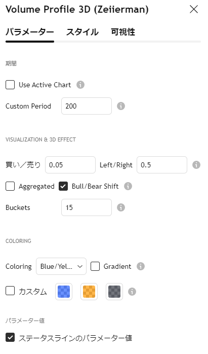 使い方も通常のボリュームプロファイルと同じで、POCを分析したり、売り買いの強弱を見たりなど用途は多いです。